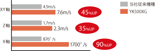 YK1200XGは、1,200 mmアーム・50 kg可搬という仕様にも関わらず、40 kgワーク搬送時に0.92秒という業界トップクラスの高速標準サイクルタイムを達成しています 。