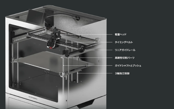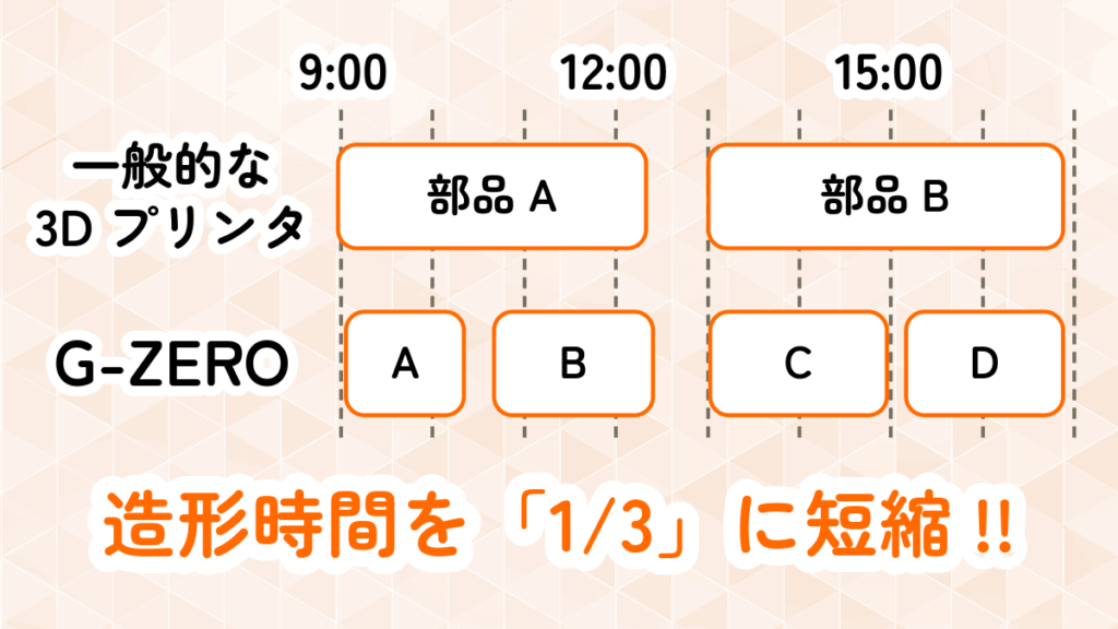 印刷速度は500mm/s、従来のFFFプリンタと比較して造形時間が1/3ほど短縮できます。