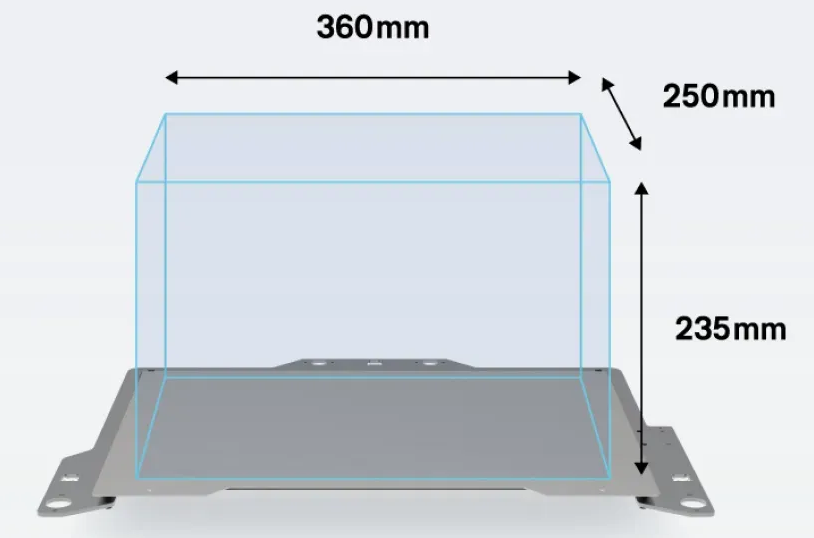 造形範囲は360 × 250 × 235mm と約1.7倍の造形スペースに。